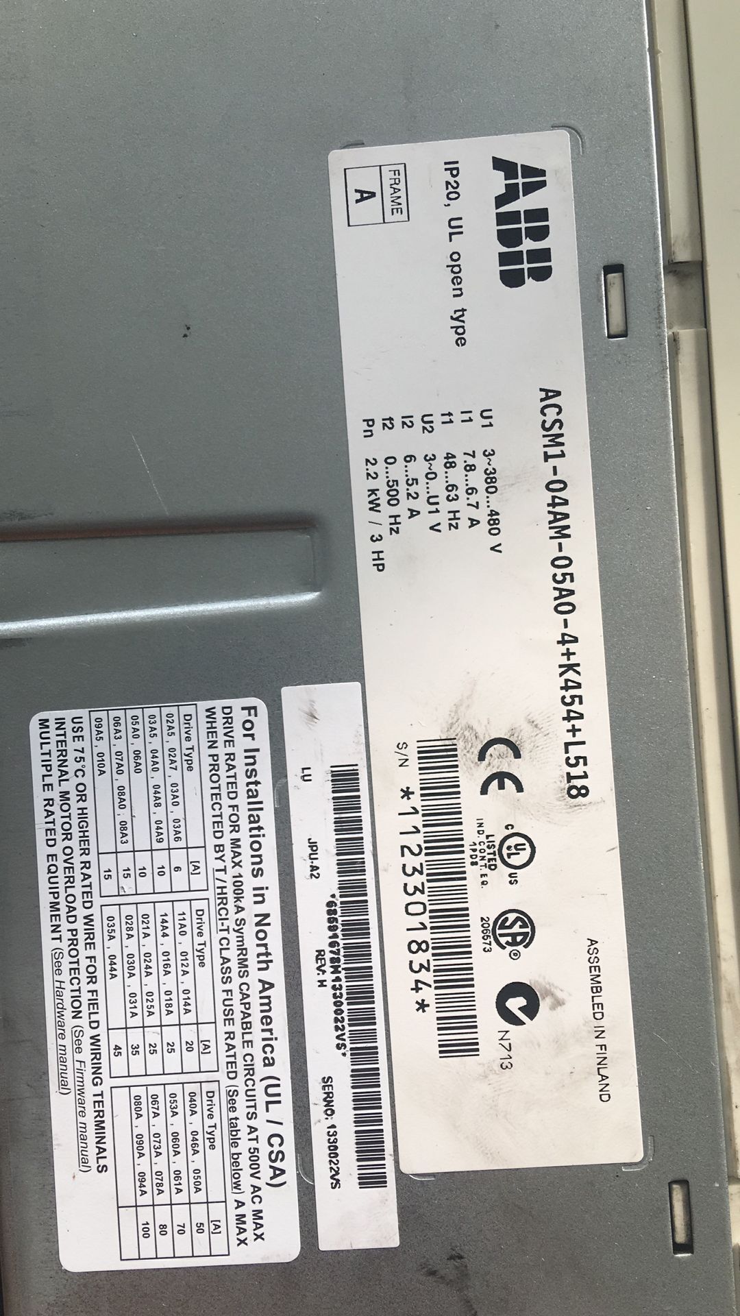 ACS800全系列型號:ACS800-01-0006-3+P901